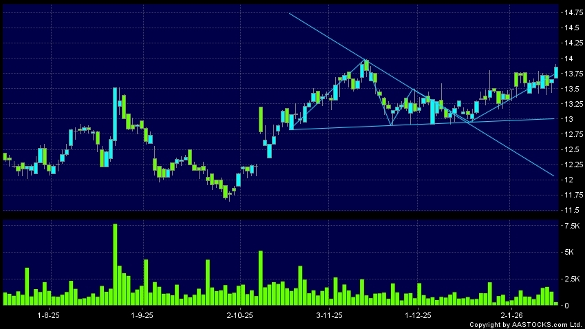Triangle Breakout means the volatility of price movement is decreasing, stock price finally broke the top of triangle. An upward trend will start.(HK stocks quote is delayed for at least 15 mins.Short Selling Data as at 2026-01-16 16:25.)