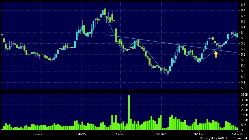 Head Shoulders bottom is a typical bullish signal, when stock price breaks the resistant level, uptrend would possibly start.(HK stocks quote is delayed for at least 15 mins.Short Selling Data as at 2025-12-02 16:25.)
