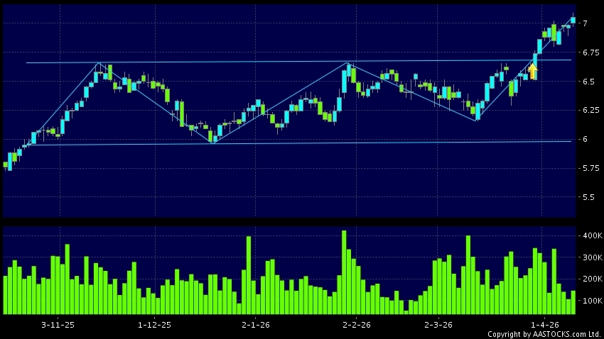Disclaimer:The information, financial market data, quotes, charts, statistics and / or various technical analysis indicators are automatically generated based on the analyses and interpretations of publicly available information and should be used as references only at your own discretion. Such automatically generated content does not reflect the views or opinions of AASTOCKS.com Limited nor does AASTOCKS.com Limited make any guarantees to their accuracy, completeness, timeliness or correctness. You are advised to consult independent professional advice to verify pricing information or to obtain more detailed market information. Any uses of information or trades executed following the said automatically generated content are taken at your own risk for your own account.
