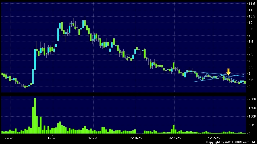 Triangle Breakout means the volatility of price movement is decreasing, stock price finally broke the bottom of triangle. A downward trend will start.(HK stocks quote is delayed for at least 15 mins.Short Selling Data as at 2025-12-24 12:25.)