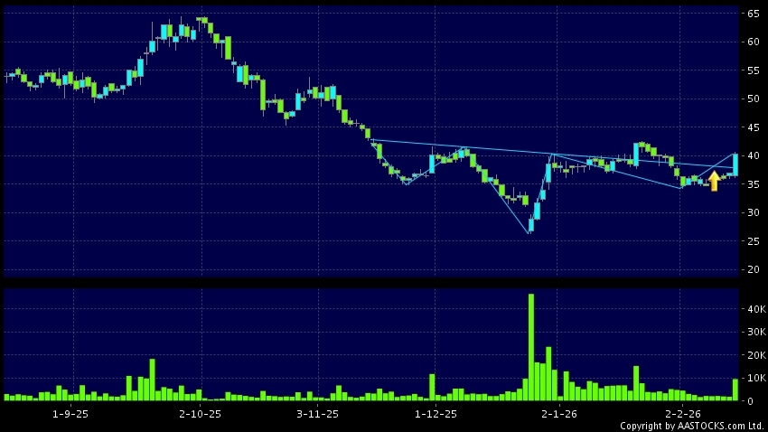 DOBOT(02432.HK) appears an upside breakout, rose above the neckline. Last printed at 40.200; rose 9.002%; on volume of 9.49M shares and turnover of $371.45MRecent PerformanceIn 3 d...