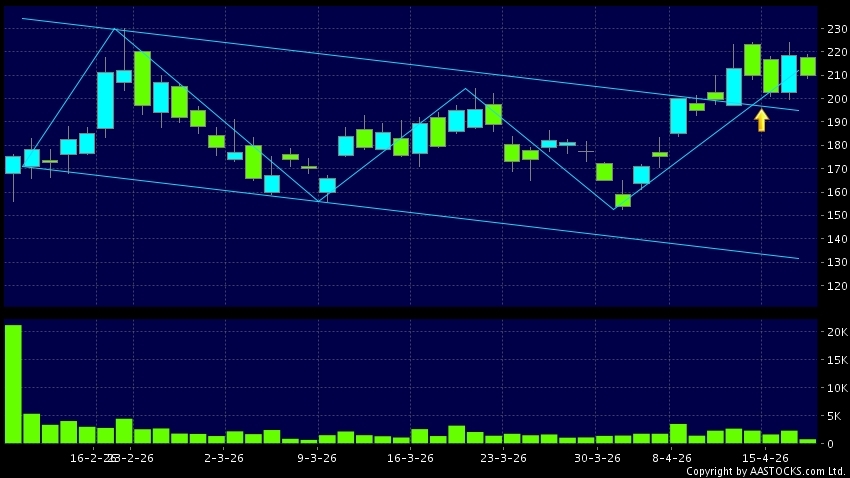 Disclaimer:The information, financial market data, quotes, charts, statistics and / or various technical analysis indicators are automatically generated based on the analyses and interpretations of publicly available information and should be used as references only at your own discretion. Such automatically generated content does not reflect the views or opinions of AASTOCKS.com Limited nor does AASTOCKS.com Limited make any guarantees to their accuracy, completeness, timeliness or correctness. You are advised to consult independent professional advice to verify pricing information or to obtain more detailed market information. Any uses of information or trades executed following the said automatically generated content are taken at your own risk for your own account.