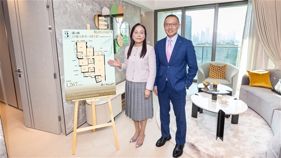 长实(01113.HK)与港铁(00066.HK)合作发展的黄竹坑Blue Coast II累售510伙,套现金额达约73亿。发展商今日(9日)向传媒展示全新四房现楼示范单位,位於第3座15楼A单位,属四房双套连储物房及洗手间,实用面积1,267平方尺。