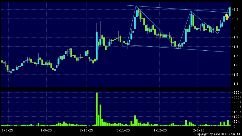 区域突破指股价在过去的一段时间只在一个范围在内活动,然後股价上升作出突破,升穿区域的顶部,技术走势向好。(港股报价延迟最少十五分钟。沽空资料截至 2026-01-29 16:25。)