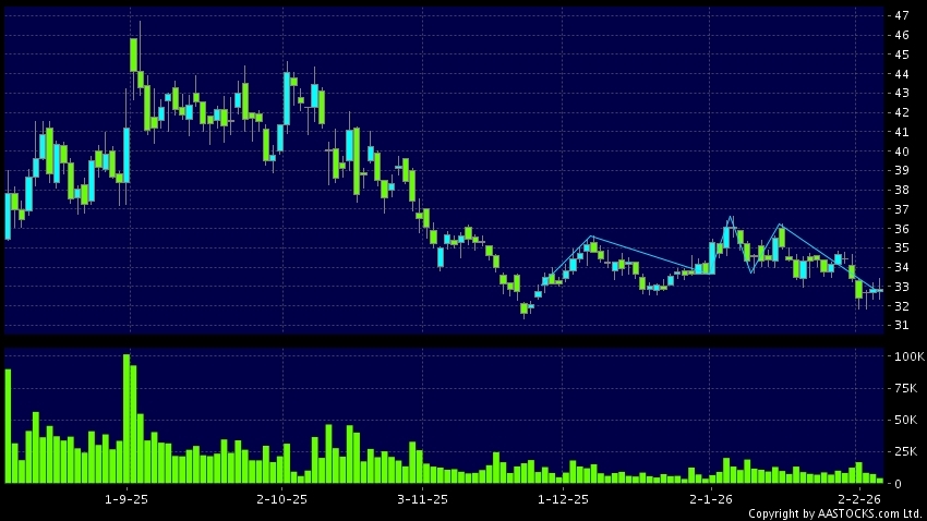 三重顶指股票上升至三个相近的高位後,开始下跌,然後形成下降趋势,属利淡讯号。三个高点成为一个阻力位,难以升破。(港股报价延迟最少十五分钟。沽空资料截至 2026-02-05 12:25。)