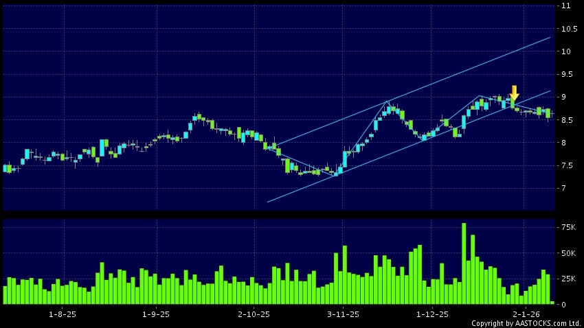 区域突破指股价在过去的一段时间只在一个范围在内活动,然後股价下跌作出突破,跌穿区域的底部,技术走势偏软。(港股报价延迟最少十五分钟。沽空资料截至 2026-01-14 12:25。)