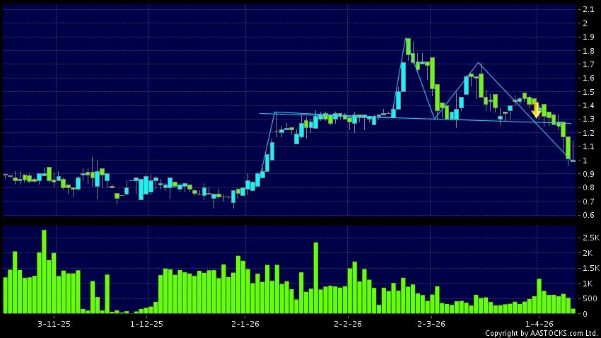 中国文旅农业(00542.HK) 0.000 (0.000%) 呈现头肩顶向下突破。现价报1.000,下跌0.990%,成交量16.40万股,成交额16.52万。