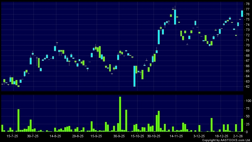 免责声明:以上金融市场数据丶报价丶图表 及/或各种技术分析指标乃根据公开资料分析和演释自动生成的,仅作参考使用。此类自动生成的内容并不代表AASTOCKS.com Limited的立场。AASTOCKS.com Limited并不保证其准确性丶完整性丶实时性或者正确性。阁下应谘询独立专业意见,以核实定价资料或获取更详细的市场信息及须为所有跟随此类自动生成的内容执行的交易或使用该内容负责。
