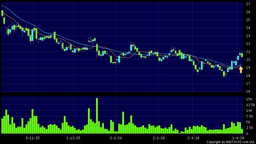 黄金交叉是一个利好讯号,指股价的短期移动平均线升穿长期移动平均线,例如50天线升穿250天线,在图表上构成交叉的形状。股价通常会上升形成一个上升趋势,技术走势向好。(港股报价延迟最少十五分钟。沽空资料截至 2026-04-17 16:25。)