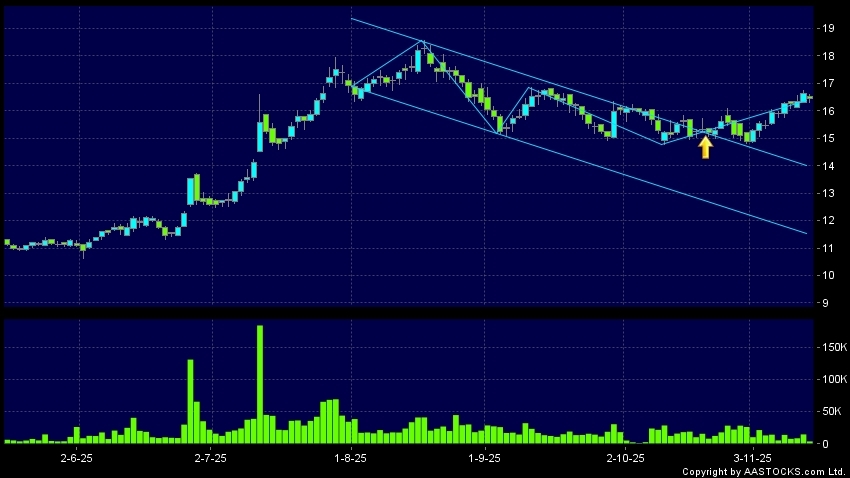 区域突破指股价在过去的一段时间只在一个范围在内活动,然後股价上升作出突破,升穿区域的顶部,技术走势向好。(港股报价延迟最少十五分钟。沽空资料截至 2025-11-14 16:25。)