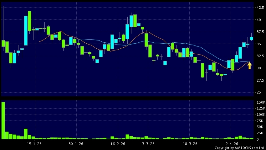 黄金交叉是一个利好讯号,指股价的短期移动平均线升穿长期移动平均线,例如50天线升穿250天线,在图表上构成交叉的形状。股价通常会上升形成一个上升趋势,技术走势向好。(港股报价延迟最少十五分钟。沽空资料截至 2026-04-16 16:25。)