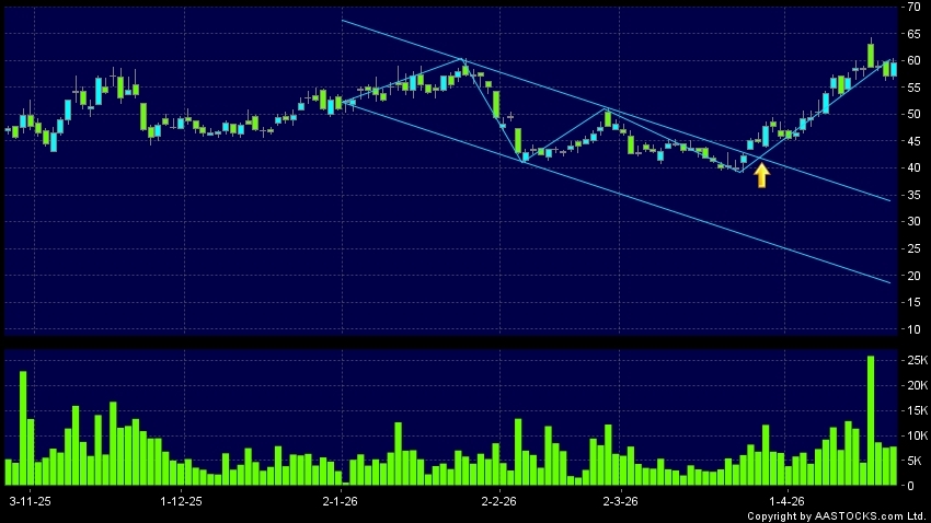 区域突破指股价在过去的一段时间只在一个范围在内活动,然後股价上升作出突破,升穿区域的顶部,技术走势向好。(港股报价延迟最少十五分钟。沽空资料截至 2026-04-24 16:25。)