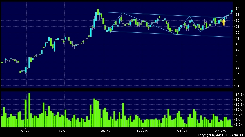 區域突破指股價在過去的一段時間只在一個範圍在內活動,然後股價上升作出突破,升穿區域的頂部,技術走勢向好。(港股報價延遲最少十五分鐘。沽空資料截至 2025-11-11 16:25。)