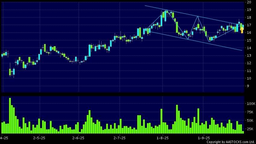 區域突破指股價在過去的一段時間只在一個範圍在內活動,然後股價上升作出突破,升穿區域的頂部,技術走勢向好。(港股報價延遲最少十五分鐘。沽空資料截至 2025-10-08 16:25。)