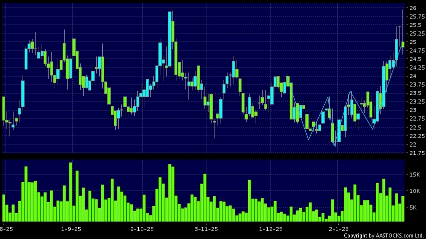 免責聲明:以上金融市場數據、報價、圖表 及/或各種技術分析指標乃根據公開資料分析和演釋自動生成的,僅作參考使用。此類自動生成的內容並不代表AASTOCKS.com Limited的立場。AASTOCKS.com Limited並不保證其準確性、完整性、實時性或者正確性。閣下應諮詢獨立專業意見,以核實定價資料或獲取更詳細的市場信息及須為所有跟隨此類自動生成的內容執行的交易或使用該內容負責。