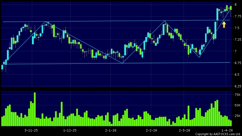 區域突破指股價在過去的一段時間只在一個範圍在內活動,然後股價上升作出突破,升穿區域的頂部,技術走勢向好。(港股報價延遲最少十五分鐘。沽空資料截至 2026-04-16 16:25。)