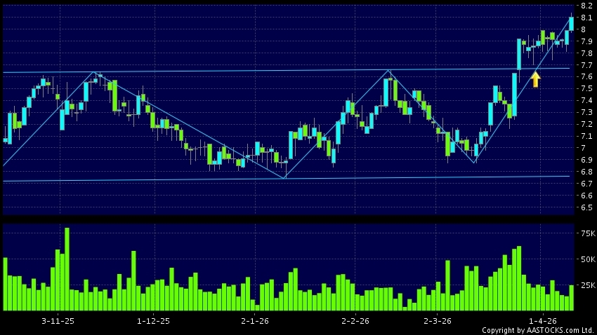 區域突破指股價在過去的一段時間只在一個範圍在內活動,然後股價上升作出突破,升穿區域的頂部,技術走勢向好。(港股報價延遲最少十五分鐘。沽空資料截至 2026-04-16 16:25。)