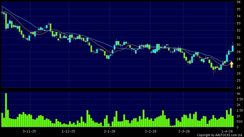 黃金交叉是一個利好訊號,指股價的短期移動平均線升穿長期移動平均線,例如50天線升穿250天線,在圖表上構成交叉的形狀。股價通常會上升形成一個上升趨勢,技術走勢向好。(港股報價延遲最少十五分鐘。沽空資料截至 2026-04-17 16:25。)