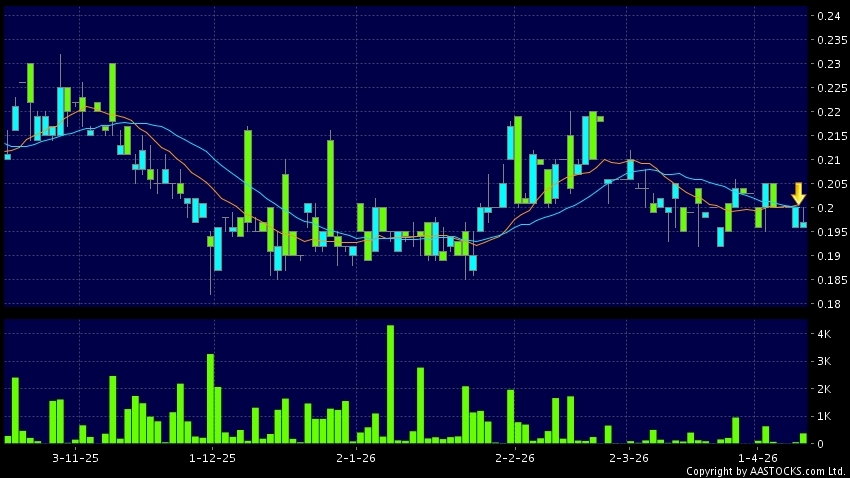 成實外教育(01565.HK) 0.000 (0.000%) 10天移動平均線跌穿20天移動平均線,出現死亡交叉。現價報0.197,下跌1.500%,成交量37.10萬股,成交額7.38萬。