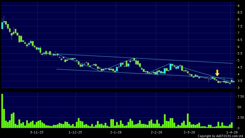 區域突破指股價在過去的一段時間只在一個範圍在內活動,然後股價下跌作出突破,跌穿區域的底部,技術走勢偏軟。(港股報價延遲最少十五分鐘。沽空資料截至 2026-04-02 16:25。)