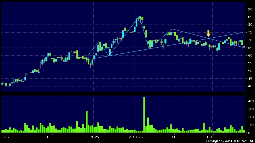 頭肩頂是典型的沽出訊號,當股價跌穿支持線(頸線)時,跌勢確認股價將持續下跌,技術走勢偏軟。(港股報價延遲最少十五分鐘。沽空資料截至 2025-12-24 12:25。)