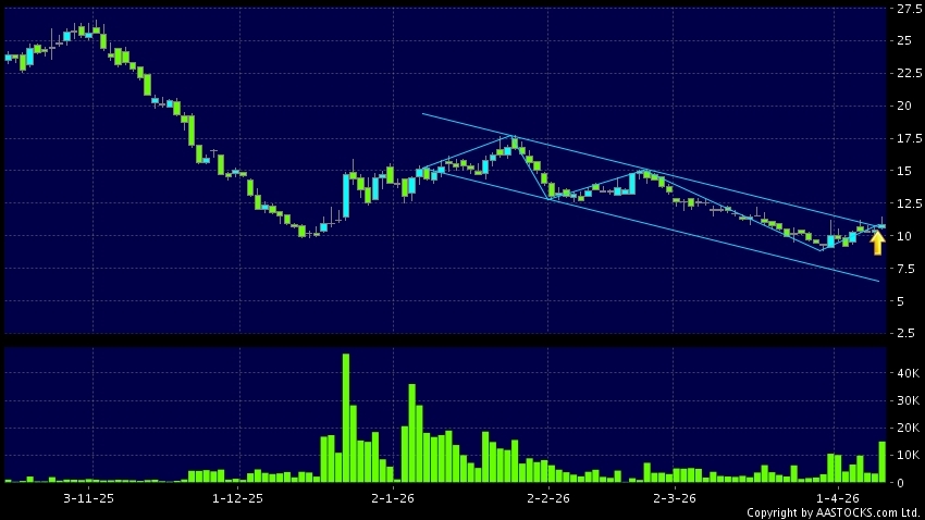 區域突破指股價在過去的一段時間只在一個範圍在內活動,然後股價上升作出突破,升穿區域的頂部,技術走勢向好。(港股報價延遲最少十五分鐘。沽空資料截至 2026-04-27 16:25。)