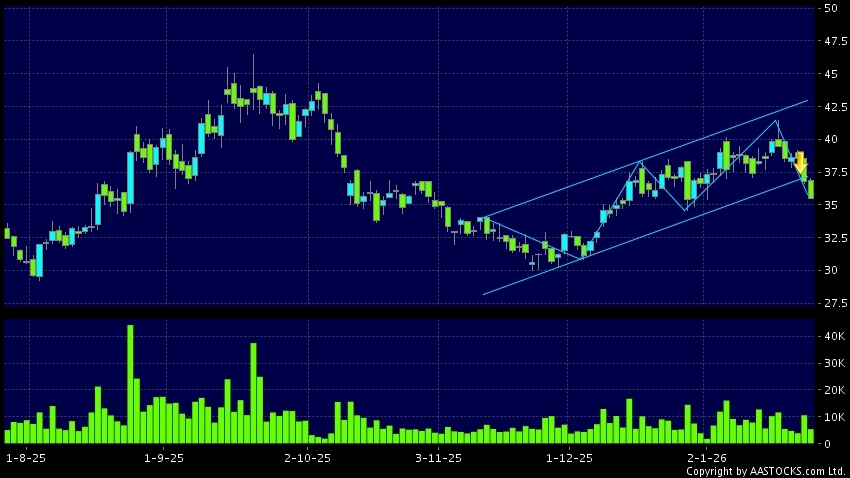 區域突破指股價在過去的一段時間只在一個範圍在內活動,然後股價下跌作出突破,跌穿區域的底部,技術走勢偏軟。(港股報價延遲最少十五分鐘。沽空資料截至 2026-01-30 16:25。)