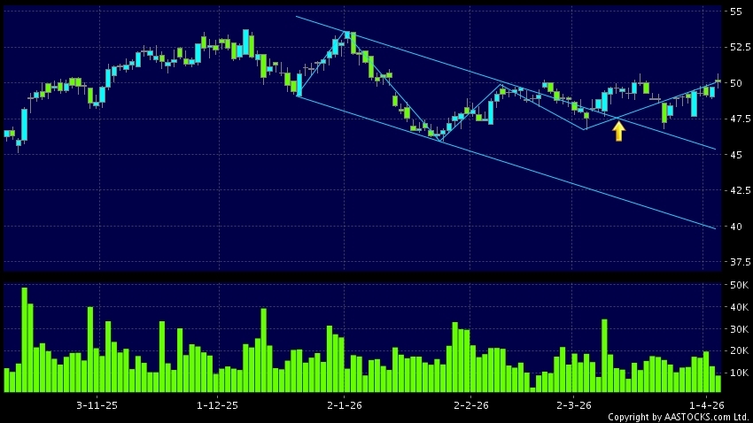 區域突破指股價在過去的一段時間只在一個範圍在內活動,然後股價上升作出突破,升穿區域的頂部,技術走勢向好。(港股報價延遲最少十五分鐘。沽空資料截至 2026-04-17 16:25。)